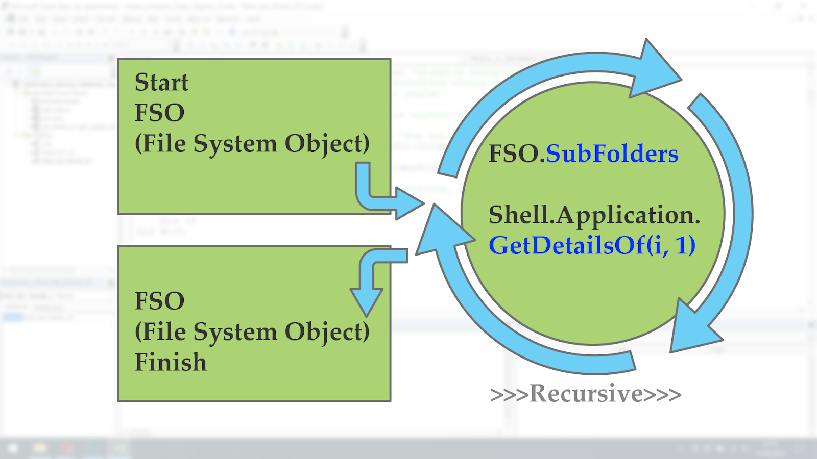 Ardından Shell.Application objesinin GetDetailsOf özelliğini vidyoda anlatılan özyinelemeli yapının içine yerleştirdim.